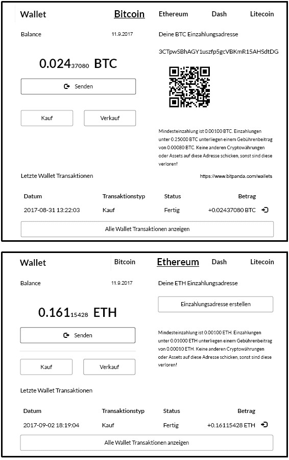 Beispiele: elektronische Geldbörse mit BTC und ETH