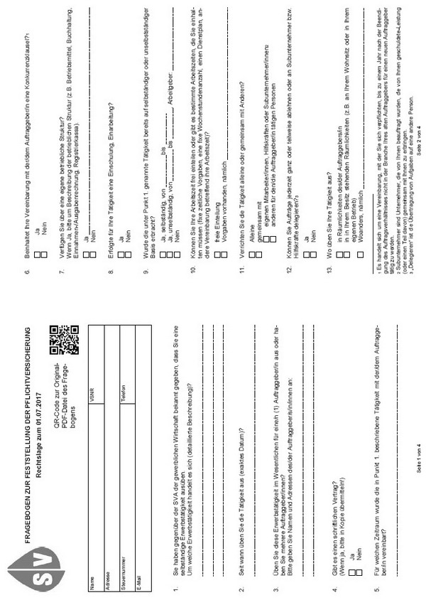 Fragebogen Zur Feststellung Der Pflichtversicherung Rechtslage zum 01.07.2017