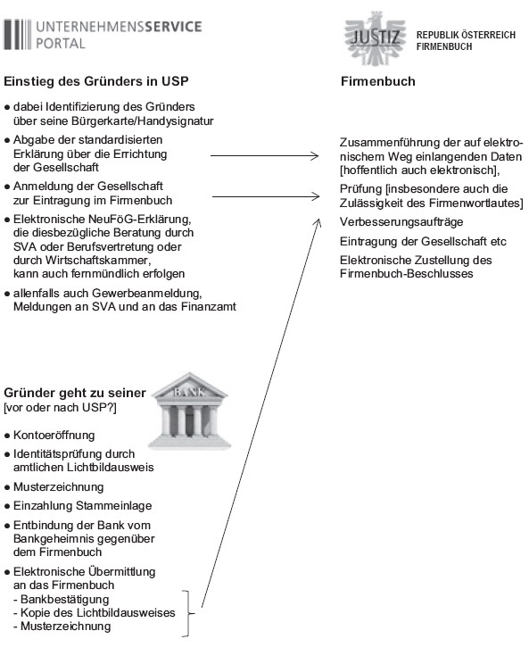 Wie sich der Gesetzgeber den vereinfachten Gründungsvorgang praktisch vorstellen könnte, vorbehaltlich Gesetzwerdung und der noch ausstehenden Verordnung des Bundesministers für Justiz
