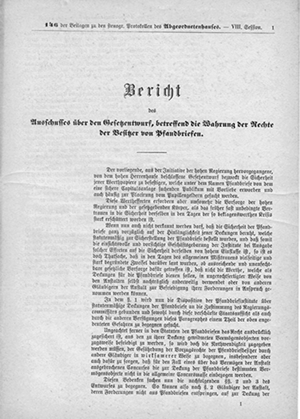 <i>Heindler/Wolfbauer</i> in <i>Heindler/Wolfbauer</i> (Hrsg), PfandBG - Pfandbriefgesetz (2022) Anlage 10: Bericht des Ausschusses über den Gesetzesentwurf, betreffend die Wahrung der Rechte der Besitzer von Pfandbriefen vom 26. 3. 1874, Seite 686 Seite 686
