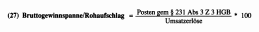 Der Posten „Herstellungskosten der zur Erzielung der Umsatzerlöse erbrachten Leistungen“ (Produktionsbetrieb) bzw „Handelswarenverbrauch“ (Handelsbetrieb) gem § 231 Abs 3 Z 2 HGB erlaubt die Ermittlung der Bruttogewinnspanne bzw des Rohaufschlags. Es wird das „Bruttoergebnis vom Umsatz“ gem § 231 Abs 3 Z 3 HGB in Relation zu den Umsatzerlösen gesetzt: