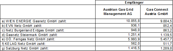 1. a) TIGAS-Erdgas Tirol GmbH zahlt an Austrian Gas Grid Management AG: 546,7
