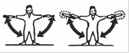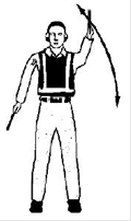 (Die seitwärts waagrecht ausgestreckten Arme werden mit nach oben gerichteten Handflächen von der Schulterhöhe wiederholt aufwärts bewegt; die Geschwindigkeit der Armbewegung deutet die erforderliche Steiggeschwindigkeit an.)
