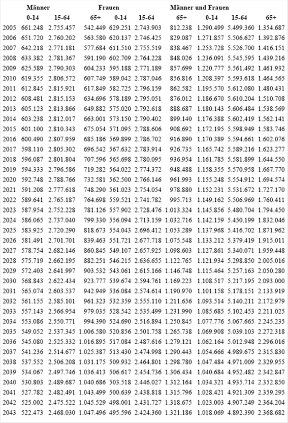 | Referenzlebenserwartung | Gesamtbevölkerung | Anteil der über 65-Jäh-rigen | |||||||||||