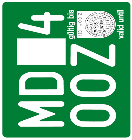 Für VZT Muster VI: Untergrund der Tafel blau mit roten Feld mit Angabe der letzten zwei Ziffern der Jahreszahl des Kalenderjahres in dem die Zulassung erlischt.