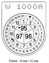 Für VZT Muster VI: Untergrund der Tafel blau mit roten Feld mit Angabe der letzten zwei Ziffern der Jahreszahl des Kalenderjahres in dem die Zulassung erlischt.