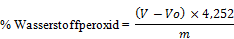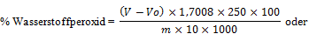 - 6. BERECHNUNG Der Gehalt an Wasserstoffperoxid der Ware in Gewichts-Prozent (% m/m) wird nach folgender Formel berechnet: