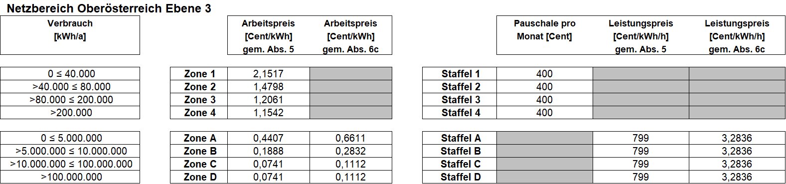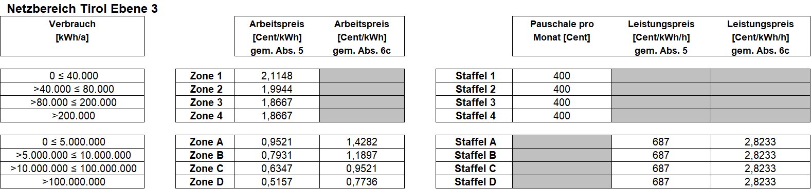 - 2. Netznutzungsentgelt für die Netzebene 3: