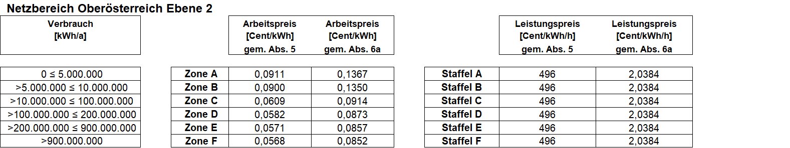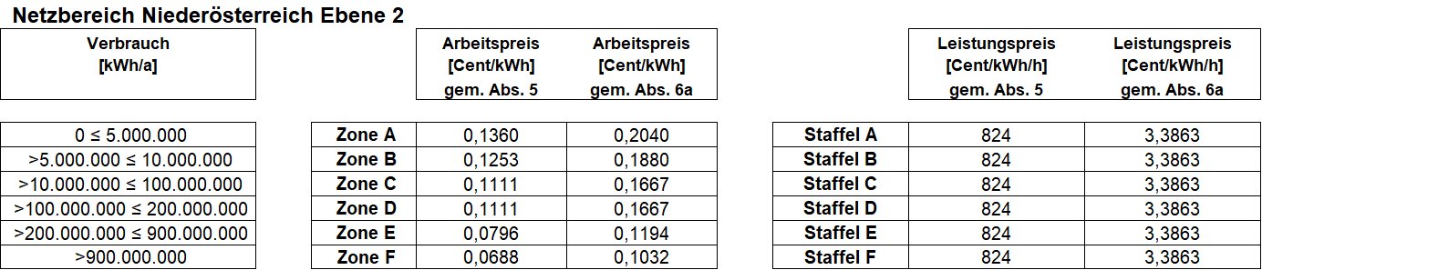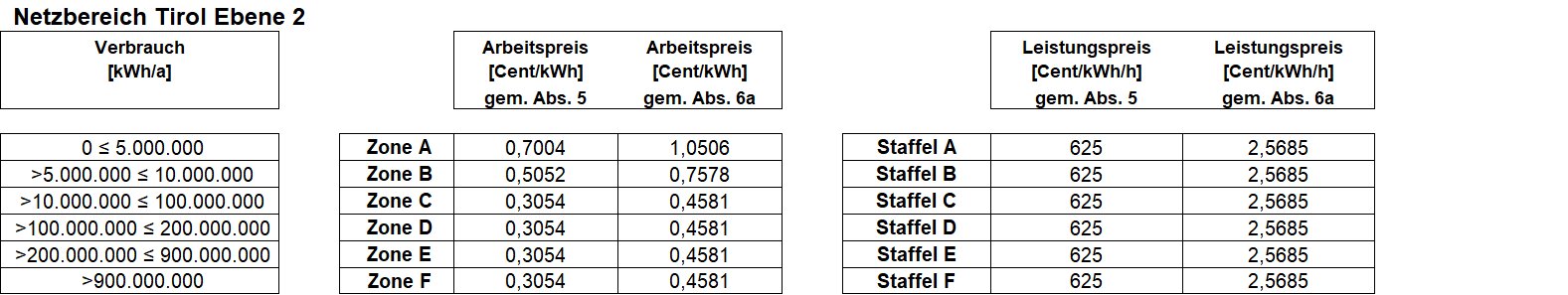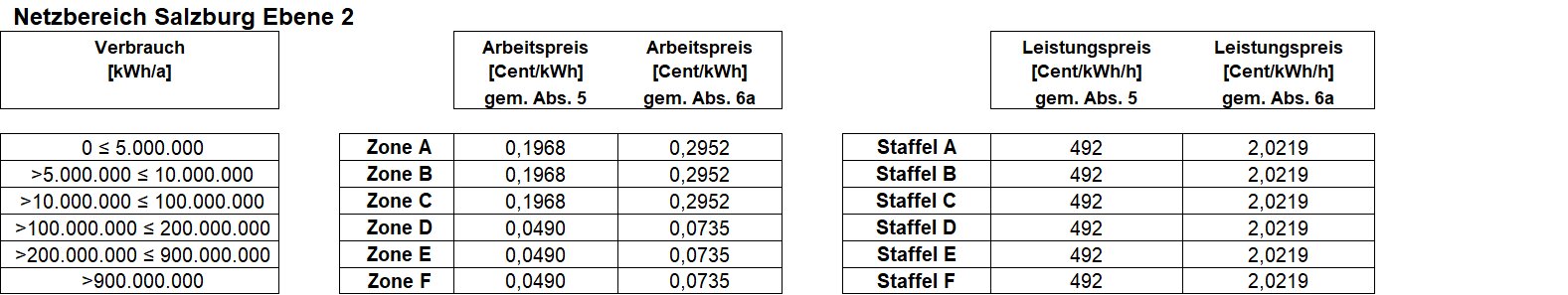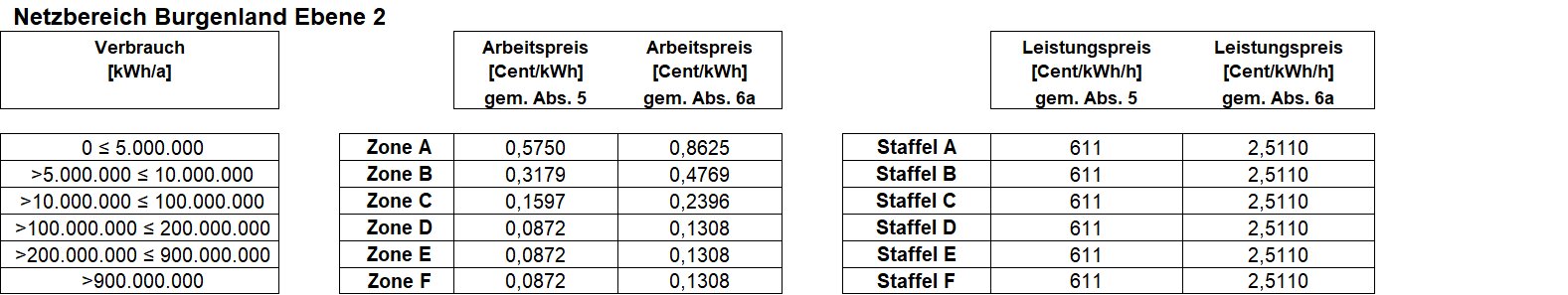 - 1. Netznutzungsentgelt für die Netzebene 2: