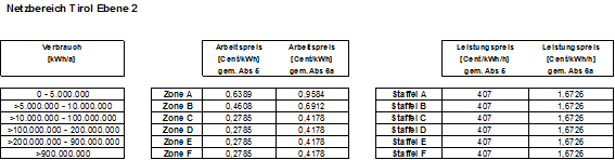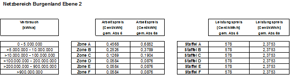 1. 1. Netznutzungsentgelt für die Netzebene 2:
