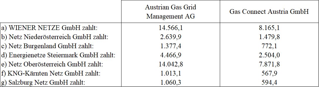 1. 3. Marktgebiet Vorarlberg: Vorarlberger Energienetze GmbH zahlt an Austrian Gas Grid Management AG: 6.791,5.