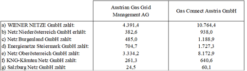 1. 3. Marktgebiet Vorarlberg: Die Vorarlberger Energienetze GmbH zahlt an Austrian Gas Grid Management AG: 5.161,9.