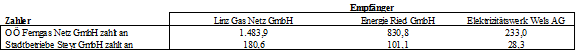 (3) Für den Netzbereich Oberösterreich werden folgende Ausgleichszahlungen festgelegt: