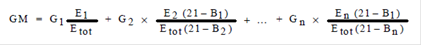 Als Emissionsgrenzwert für Mischfeuerungsanlagen gilt jener Wert, der sich nach folgender Formel aus der Summe der jeweils mit dem Anteil des betreffenden Brennstoffes an der gesamten