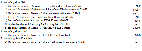 Die zu bezahlenden Anteile am jährlichen Entgelt für den Verteilergebietsmanager werden in TEUR wie folgt bestimmt. Die Entrichtung des Entgelts an den Verteilergebietsmanager erfolgt in zwölf gleichen monatlichen Teilbeträgen: