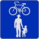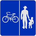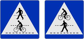 - Diese Zeichen zeigen einen Geh- und Radweg an, der von Radfahrern benützt werden darf, aber nicht muss, und zwar ein Zeichen nach a) einen für die gemeinsame Benützung durch Fußgänger und Radfahrer bestimmten Geh- und Radweg und ein Zeichen nach b) einen Geh- und Radweg, bei dem der Fußgänger- und Fahrradverkehr getrennt geführt werden, wobei die Symbole im Zeichen nach b) der tatsächlichen Verkehrsführung entsprechend anzuordnen sind (Fußgänger rechts, Fahrrad links oder umgekehrt).