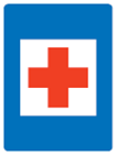 Dieses Zeichen weist auf einen Hilfsposten hin, der für die Leistung erster Hilfe ausgerüstet ist. Wird dieses Zeichen nicht beim Hilfsposten selbst angebracht, so ist auf einer Zusatztafel oder in weißer Farbe auf dem Zeichen selbst in die Richtung des Hilfspostens zu weisen und die Entfernung anzugeben.