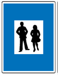 Dieses Zeichen kennzeichnet einen Schutzweg (§ 2 Abs. 1 Z 12), bei dem ständig betriebene Lichtzeichen zur Regelung des Verkehrs oder zur Abgabe blinkenden gelben Lichtes nicht vorhanden sind. Es ist beim Schutzweg anzubringen, und zwar auf Einbahnstraßen an beiden Seiten, auf anderen Straßen an der rechten Seite. Wenn jedoch die Verkehrssicherheit dadurch nicht beeinträchtigt wird, ist statt der seitlichen Anbringung die Anbringung des Zeichens über dem Schutzweg zulässig.