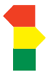 Dieses Zeichen an einem Abspanndraht für Oberleitungen von Schienenfahrzeugen zeigt an, dass auf geregelten Kreuzungen Schienenfahrzeuge bei „Gelb“ bzw. bei „Rot“ in der durch die Spitze angezeigten Richtung einbiegen.