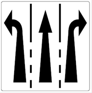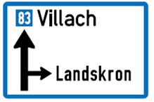Diese Zeichen zeigen den Straßenverlauf und wichtige Abzweigungen an. Ein solches Zeichen ist 150 m bis 250 m vor der Kreuzung anzubringen. Straßen mit Vorrang werden mit breiten, andere Straßen mit schmalen Strichen angezeigt. Außer den Ortsnamen können auch die Straßennummern und Symbole angebracht werden.