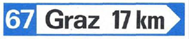 Diese Zeichen zeigen im Bereich einer Kreuzung die Richtung an, in der ein Ort liegt. Sie dürfen auch nur auf der linken Straßenseite angebracht werden, wenn dies eine bessere Erkennbarkeit erwarten läßt. Auf den Zeichen können auch die Namen mehrerer Orte sowie die Entfernungen, die Straßennummern, Symbole und allenfalls Hinweise auf Beschränkungen angegeben werden. Ist auf einem solchen Zeichen ein Symbol für eine bestimmte Fahrzeugart angebracht, so bedeutet dies, dass der Wegweiser nur für Fahrzeuge der betreffenden Fahrzeugart gilt.