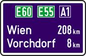 Dieses Zeichen zeigt vor einer Kreuzung den Weg zu einer Autobahn oder Autostraße an. Das Zeichen ist 150 m bis 250 m vor der Kreuzung anzubringen.