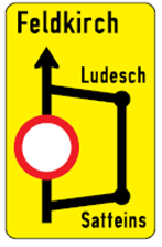 Dieses Zeichen kündigt den Verlauf einer Umleitung an. Im Zeichen kann angegeben werden, ob die Umleitung für alle Fahrzeuge oder nur für bestimmte Fahrzeugarten oder für bestimmte andere Umstände gilt (zB nur für Fahrzeuge, deren Höhe oder deren Gesamtgewicht ein bestimmtes Ausmaß überschreitet). Außerdem kann die Länge der Umleitungsstrecke angegeben werden.