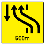 Diese Zeichen kündigen auf Straßen mit Richtungsfahrbahnen einen Wechsel der Richtungsfahrbahn an, und zwar ein Zeichen nach a) die Überleitung des Verkehrs von einer dann gesperrten Richtungsfahrbahn auf die Gegenfahrbahn, ein Zeichen nach b) die Rückleitung zum getrennten Richtungsverkehr. Auf den Zeichen ist die Anzahl und der Verlauf der zur Verfügung stehenden Fahrstreifen anzuzeigen. In den Pfeilen können auch Hinweise auf Beschränkungen oder Verbote enthalten sein. Auf den Zeichen können auch Entfernungsangaben angebracht werden.
