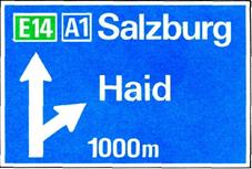 Diese Zeichen zeigen den weiteren Verlauf einer Autobahn oder Autostraße und die nächste Ausfahrt an. Ein Zeichen nach a) ist etwa 1000 m, ein Zeichen nach b) etwa 700 m oder, wenn ein Zeichen nach c) nicht angebracht wird, etwa 500 m, ein Zeichen nach c) etwa 400 m vor dem Beginn einer Ausfahrt aus einer Autobahn oder Autostraße anzubringen; ein Zeichen nach d) ist etwa 1000 m vor dem Beginn einer Ausfahrt zu einer anderen Autobahn oder Autostraße anzubringen.