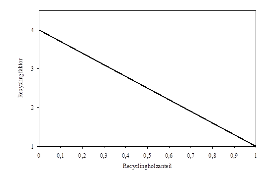 1 Rechenformel für die Ermittlung des Recyclingfaktors: Recyclingfaktor = 4 – 3 x Recyclingholzanteil [kg/kg]