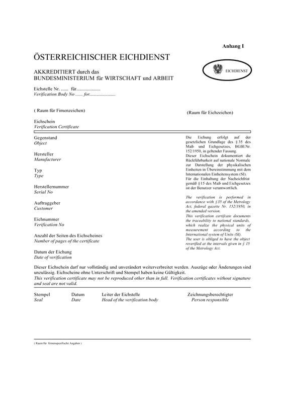 51. Im Anhang I wird die Wortfolge „AKKREDITIERT durch das BUNDESMINISTERIUM für WIRTSCHAFT und ARBEIT“ durch die Wortfolge „ERMÄCHTIGT durch das BUNDESAMT für EICH- und VERMESSUNGSWESEN“ ersetzt.)