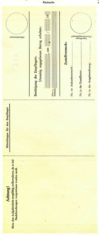 Muster einer Postanweisung