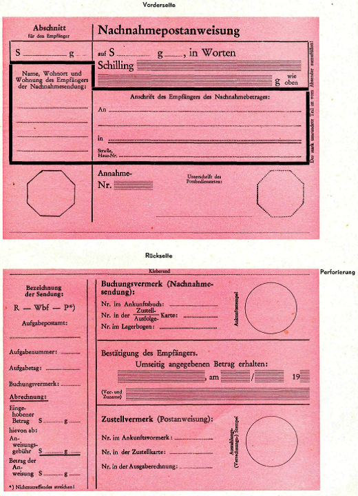 Muster einer Nachnahmepostanweisung