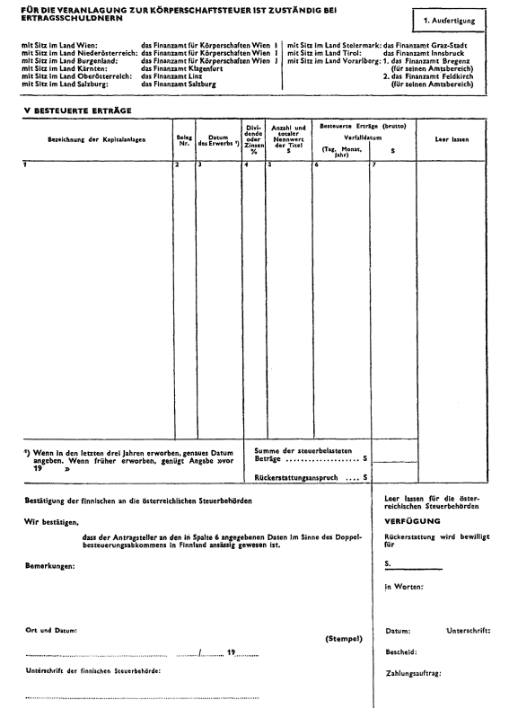 Anlage 1 Doppelbesteuerung – Entlastung bei Dividenden und Zinsen (Finnland)