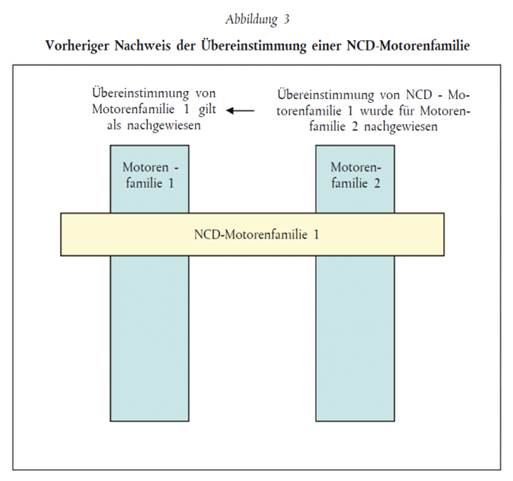 4.1.2.8. Umfasst eine nach Nummer 6 in Verbindung mit Anhang II Anlage 2 festgelegte Motorenfamilie mehr als einen Leistungsbereich, so müssen die Emissionswerte des Stamm-Motors (Typgenehmigung) und aller Motortypen innerhalb dieser Familie (Übereinstimmung der Produktion) den strengeren Vorschriften für den höheren Leistungsbereich entsprechen. Dem Antragsteller steht es frei, sich bei der Festlegung von Motorenfamilien auf einzelne Leistungsbereiche zu beschränken und den Antrag auf Erteilung der Genehmigung entsprechend zu stellen.