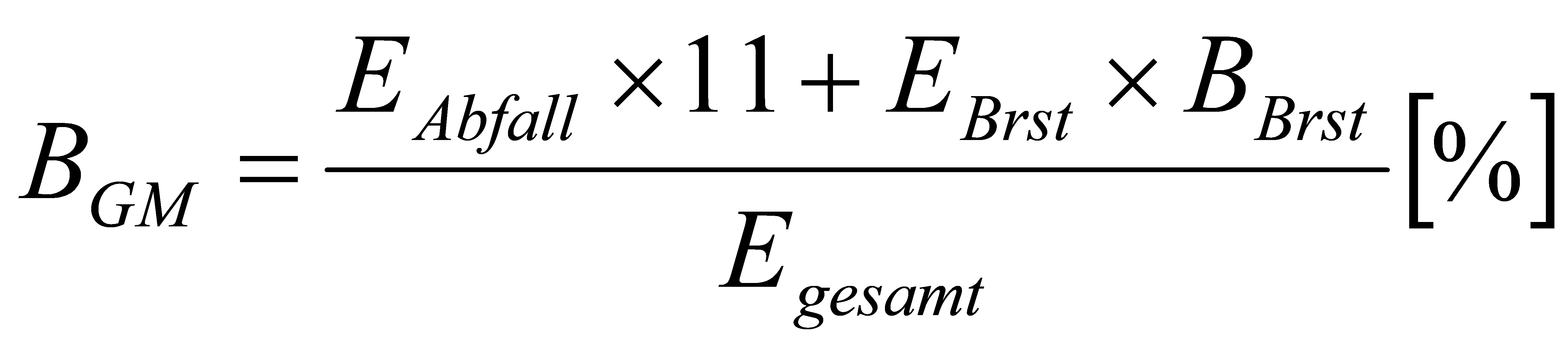 Der Bezugssauerstoffgehalt (BGM) für den Gesamtemissionsgrenzwert ist durch folgende Berechnungsmethode zu ermitteln: