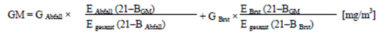 - Der Bezugssauerstoffgehalt (BGM) für den Gesamtemissionsgrenzwert ist durch folgende Berechnungsmethode zu ermitteln: