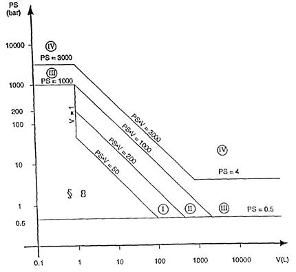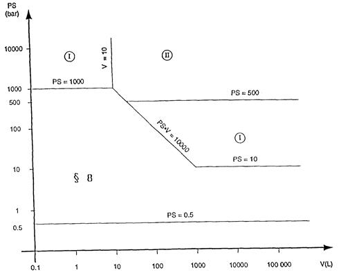 Als Ausnahme hiervon sind Behälter, die für ein instabiles Gas bestimmt sind und nach Diagramm 1 unter die Kategorie I oder II fallen, in die Kategorie III einzustufen.