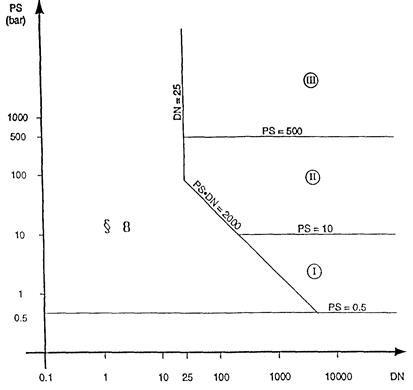 zur Präzisierung der Konformitätsbewertungskategorien gilt das jeweilige Diagramm für Behälter bzw. Rohrleitungen.