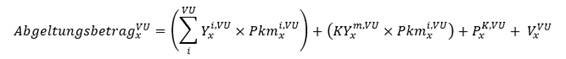 - 3. Die Ermittlung des Gesamtabgeltungsbetrags erfolgt abschließend als Summe aller dem Verkehrsunternehmen zuzuordnenden Abrechnungseinheiten durch folgende Formel