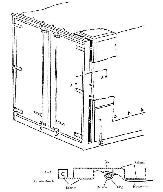 - c) Lüftungs- und Abflußöffnungen sind mit einer Vorrichtung zu versehen, die den Zugang zum Innern des Laderaums verhindert. Diese Vorrichtung muß so beschaffen sein, daß sie von außen nicht entfernt und wieder angebracht werden kann, ohne sichtbare Spuren zu hinterlassen.