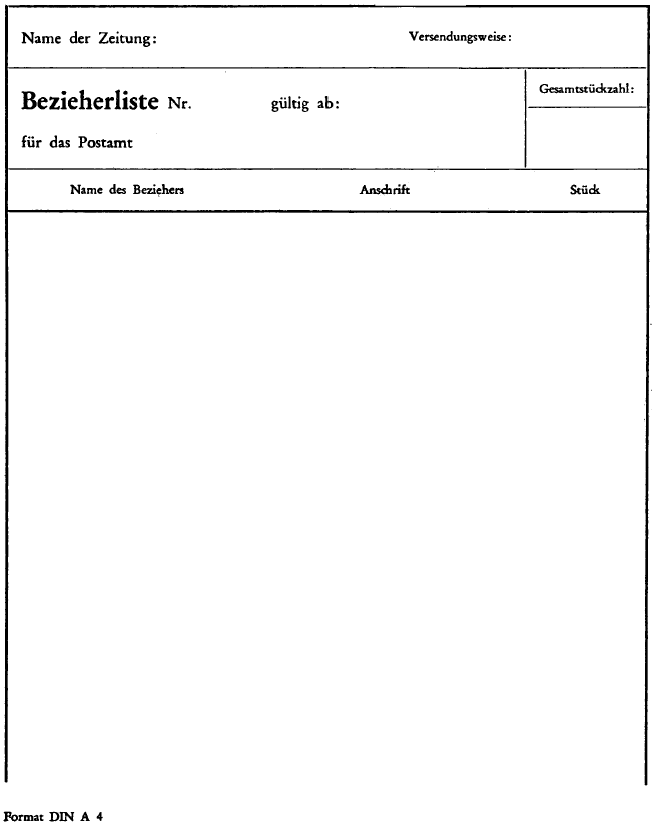 Muster einer Bezieherliste