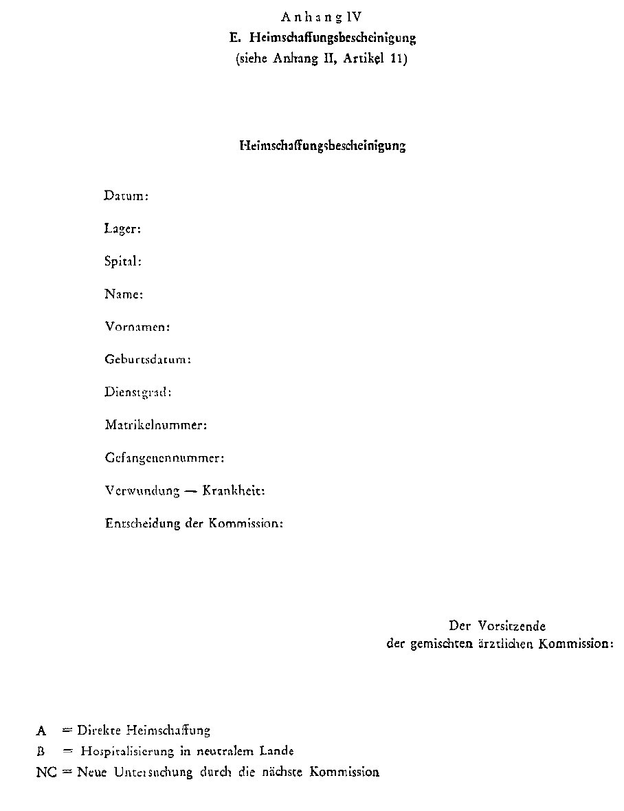 Anlage 4 Genfer Abkommen über die Behandlung der Kriegsgefangenen