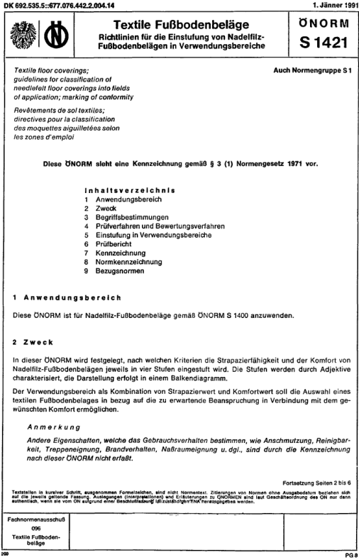 ÖNORM S 1400 | Textile Fußbodenbeläge; Benennungen mit Definitionen, Einteilung, kennzeichnende Merkmale |