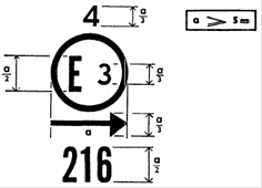 - Ein Gerät mit diesem Genehmigungszeichen ist ein in Italien (E 3) unter der Nummer 216 genehmigtes Gerät der Gruppe 4 (vorn-seitlich angebrachter Fahrtrichtungsanzeiger). Der Pfeil bezeichnet die Richtung für die Anbringung des Geräts, das nicht beliebig an der rechten oder linken Seite des Fahrzeugs angebracht werden kann. Er zeigt nach der Vorderseite des Fahrzeugs.