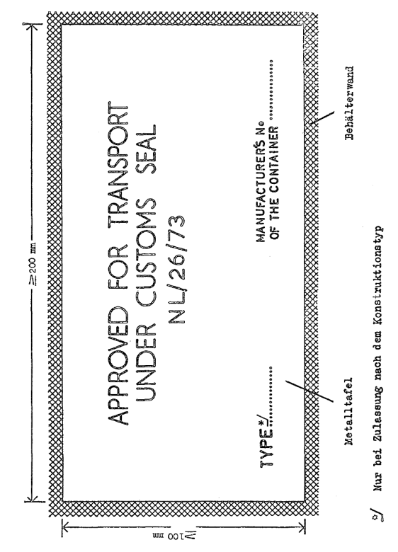 - b) die Bezeichnung des Landes, in dem der Behälter zugelassen worden ist, entweder ausgeschrieben oder durch das im internationalen Kraftfahrzeugverkehr verwendete Unterscheidungszeichen sowie die Nummer (Ziffern, Buchstaben usw.) des Verschlußanerkenntnisses (Zulassungsbescheinigung) und das Zulassungsjahr (z. B. „NL/26/73“ für Niederlande, Zulassungsbescheinigung Nr. 26 von 1973);