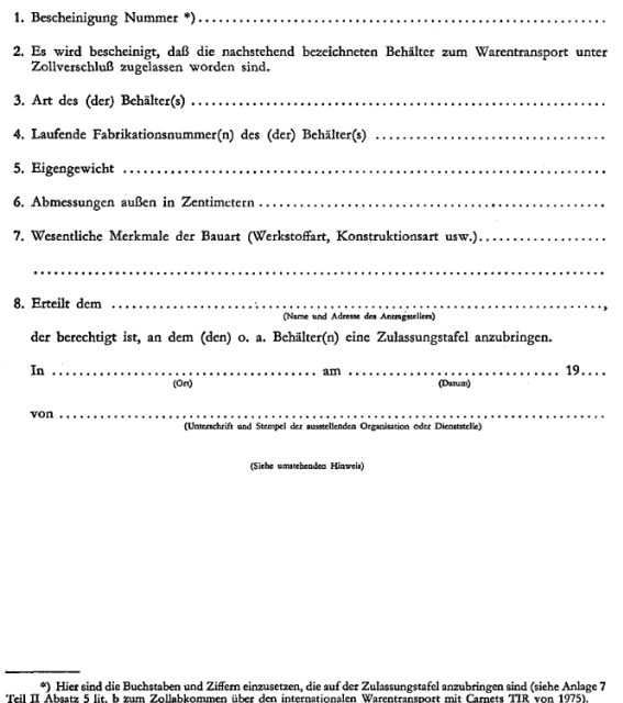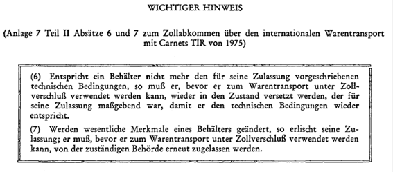 VORSCHRIFTEN ÜBER DIE TECHNISCHEN BEDINGUNGEN FÜR BEHÄLTER, DIE ZUM INTERNATIONALEN TRANSPORT UNTER ZOLLVERSCHLUSS ZUGELASSEN WERDEN KÖNNEN