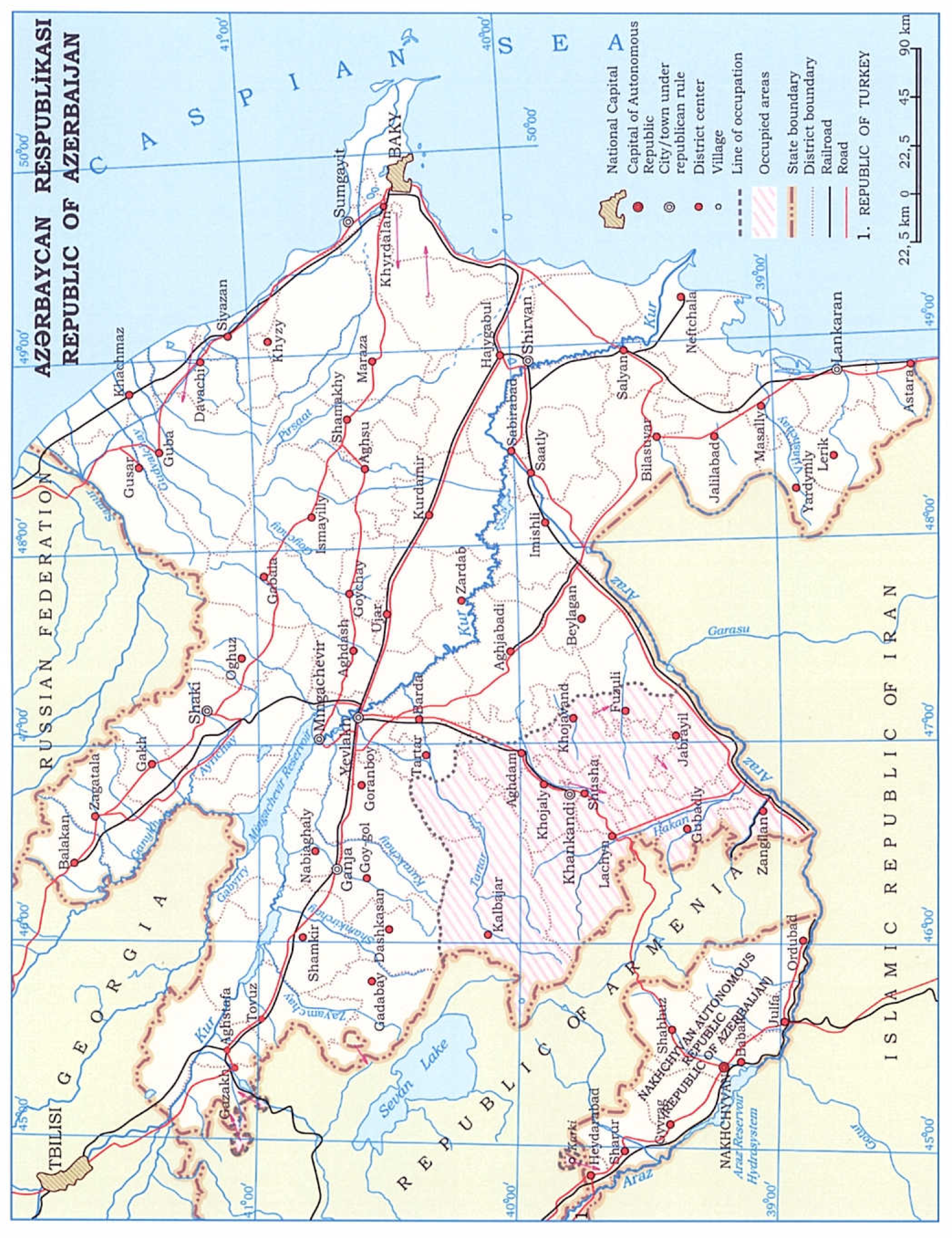 Die Republik Aserbaidschan erklärt gemäß Art. 25 Abs. 4 des Übereinkommens, dass sie das in Art. 25 Abs. 3 des Übereinkommens dargelegte Vergleichsverfahren nicht anerkennt. Die Republik Aserbaidschan erklärt, dass sie die Durchführung des Übereinkommens in ihren von der Republik Armenien besetzten Gebieten (der Region Berg-Karabach der Republik Aserbaidschan und den sieben diese Region umgebenden Provinzen) erst dann gewährleisten kann, wenn diese Gebiete von der Besatzung befreit und die Folgen dieser Besatzung vollständig beseitigt sind (die schematische Karte der besetzten Gebiete der Republik Aserbaidschan ist beigefügt).