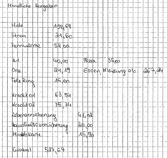 Die Lebenshaltungskosten wurden wie folgt dargestellt: