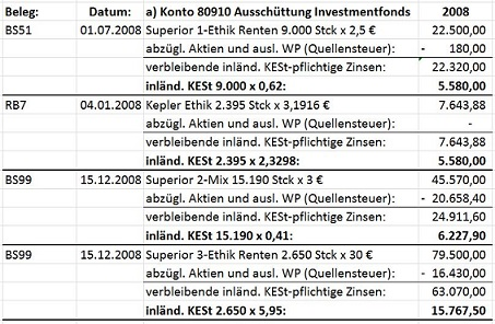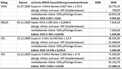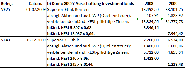 b) Konto 80927 – Ausschüttung Investmentfonds 2008 und 2009: